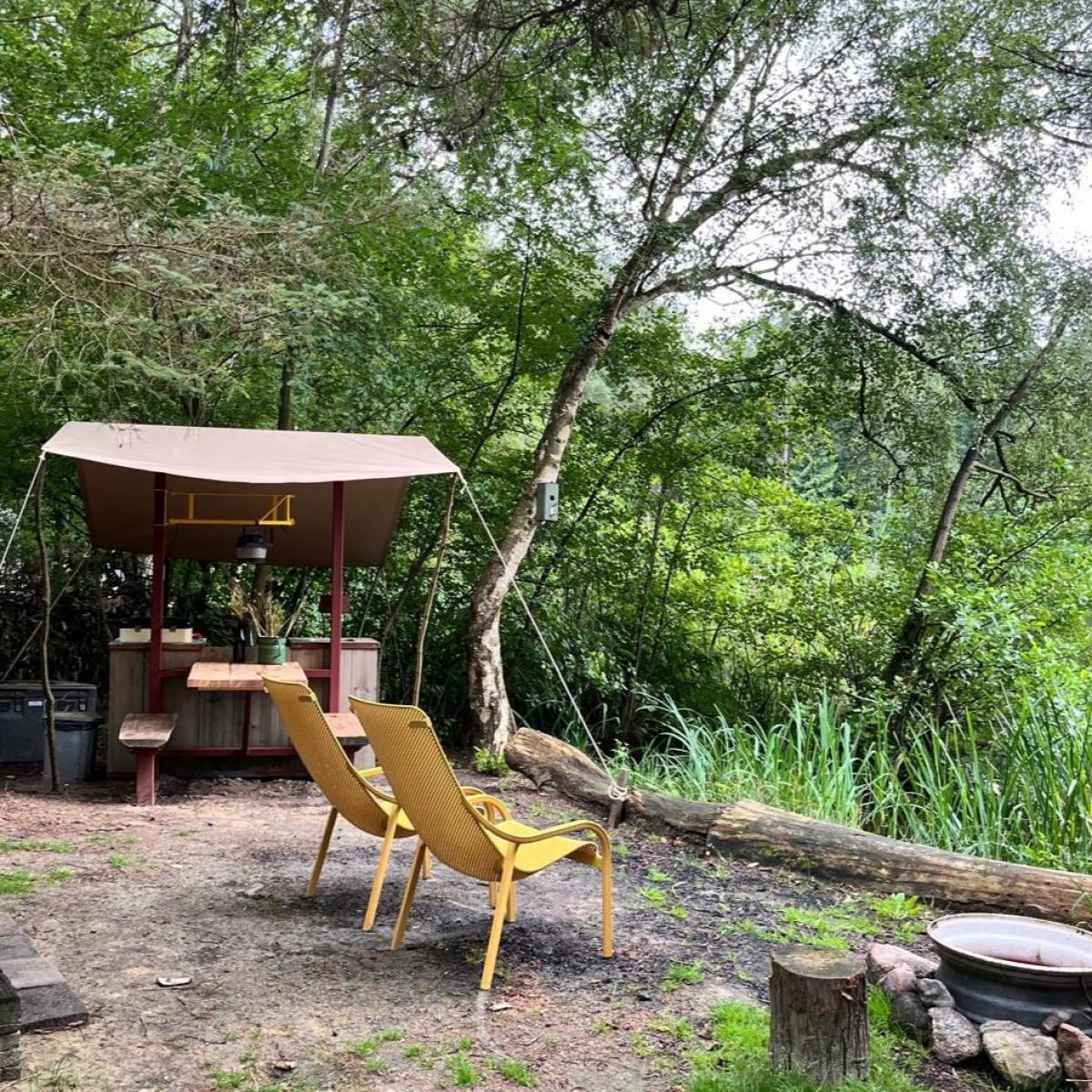 Een verblijf aan het water met een heerlijk tweepersoonsbed op de vide, te bereiken via een smalle vaste trap. Met prachtig uitzicht op... het meer. De 2 fauteuils beneden kunnen uitgeklapt worden tot twee eenpersoonsbedden (60 breed) zodat er ook kinderen of hele kleine mensen kunnen slapen. Binnen staat verder een lange klepbank met eettafel. De keuken binnen heeft een koelkast, waterjerrycan en keukeninventaris met fijne kopjes en glazen. Het tweepits kooktoestel kun je ook buiten gebruiken. Verwarmend zijn de houtkachel binnen en de vloerverwarming die voor een behaaglijke basis comfort zorgt. Buiten is een vuurplaats, hakbijl èn kampvuur-tosti-ijzer. De KWAAK is meer dan een tiny house, want het is een prachtig geheel aan het water, inclusief picknickbank, 2 loungestoelen, hangmat, roeibootje en privaat huisje met off grid toilet. Als je wil kun je voor deze accommodatie je eigen beddegoed meenemen, hoef je dus niet verplicht bij ons af te nemen.